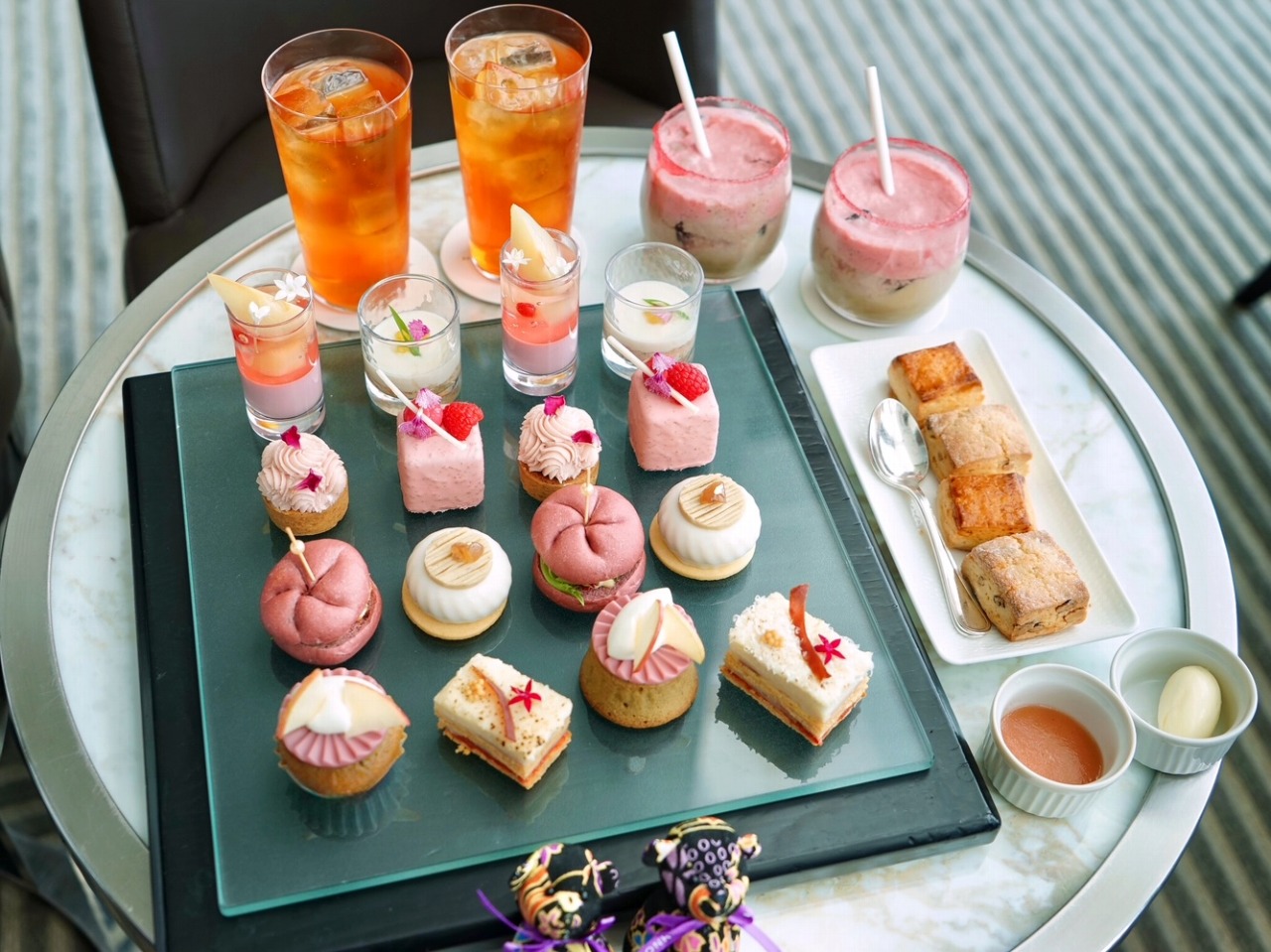 東京・汐留にある「コンラッド東京」のバー&ラウンジ「トゥエンティエイト」では、2025年11月30日(日)までの期間限定で、秋の味覚をピンクの世界観で楽しむ「オータム・アフタヌーンティー “スイート・ハーベスト”」を提供中。